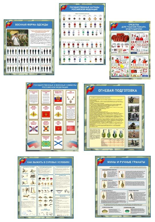 Комплект стендов в кабинет ОБЗР - 7 шт. ( 750 х 1000мм, 1шт.) ПВХ-3мм