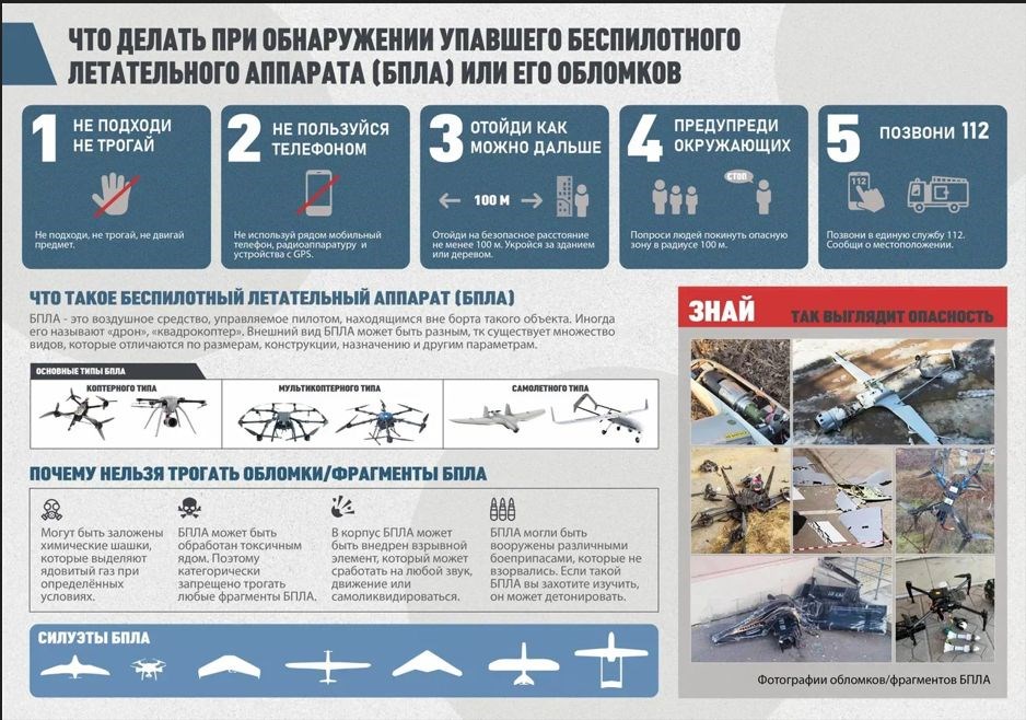 Стенд Что делать при обнаружении упавшего БПЛА, или его обломков - размер 1000 х 700мм, ПВХ-3мм