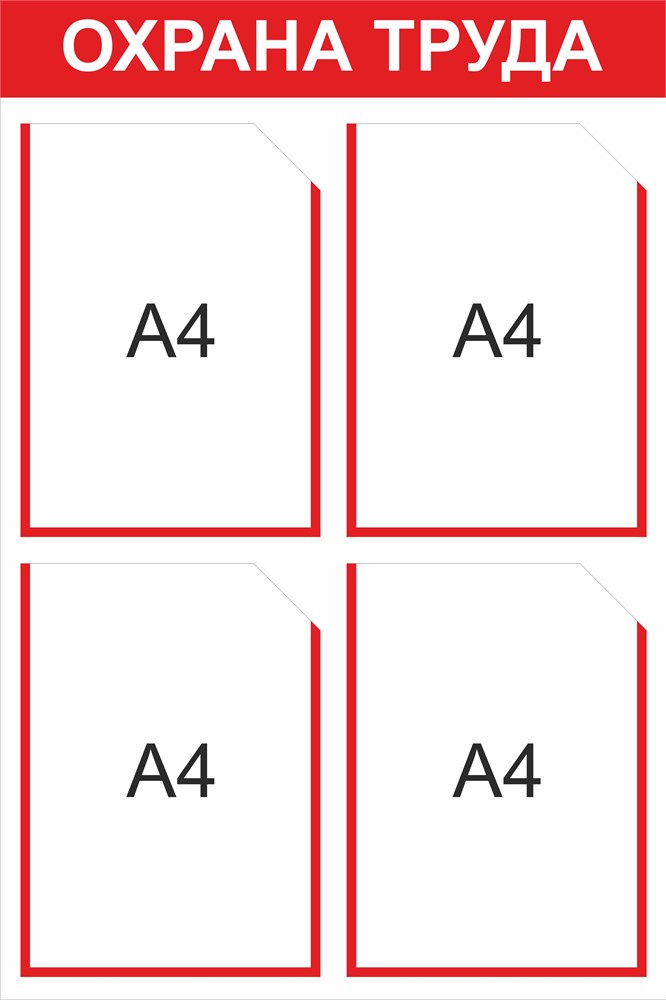 Стенд Охрана труда 500 х 750мм, ПВх-3мм, карман А4-4шт. (красный контур)