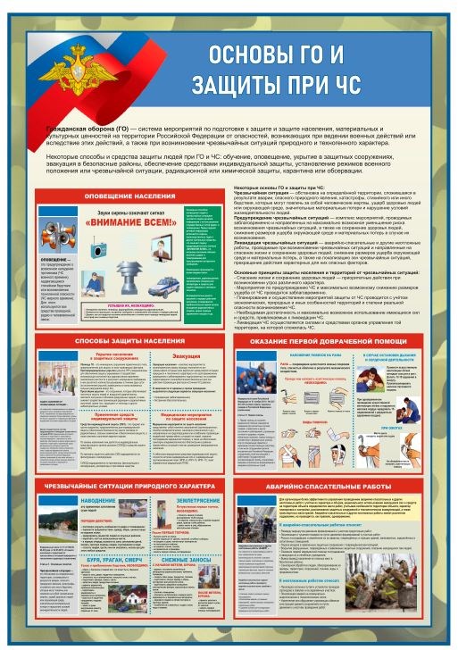 Стенд "Основы ГО и защиты при ЧС" 700 х 1000 - ПВХ-3мм