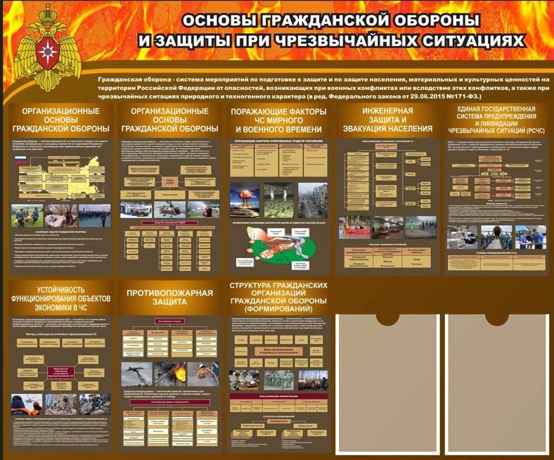 Стенд Основы Гражданской обороны и Защиты при ЧС 1200 х 1000, ПВХ-3мм, карман А4-2шт.
