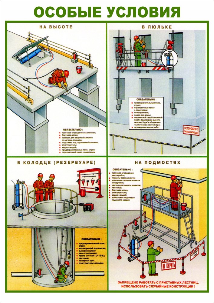Стенд "Особые условия работы газосварщика" формат А2 594 х 420 мм, пластик 3мм