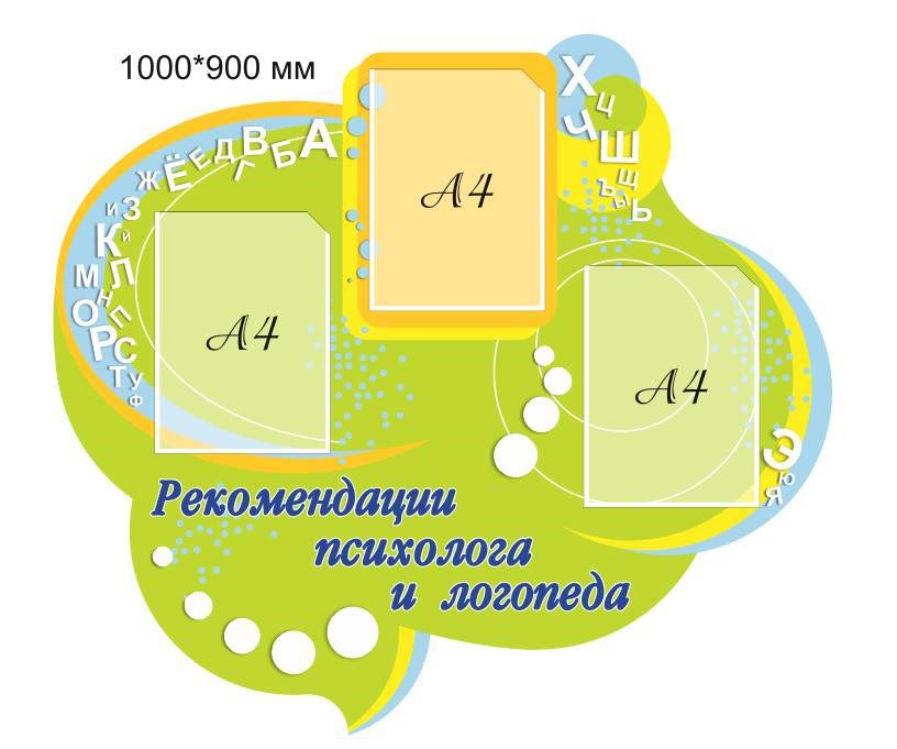 Стенд Рекомендации психолога и логопеда пластик 3 мм 1000 х 900 мм карманы А4-3шт