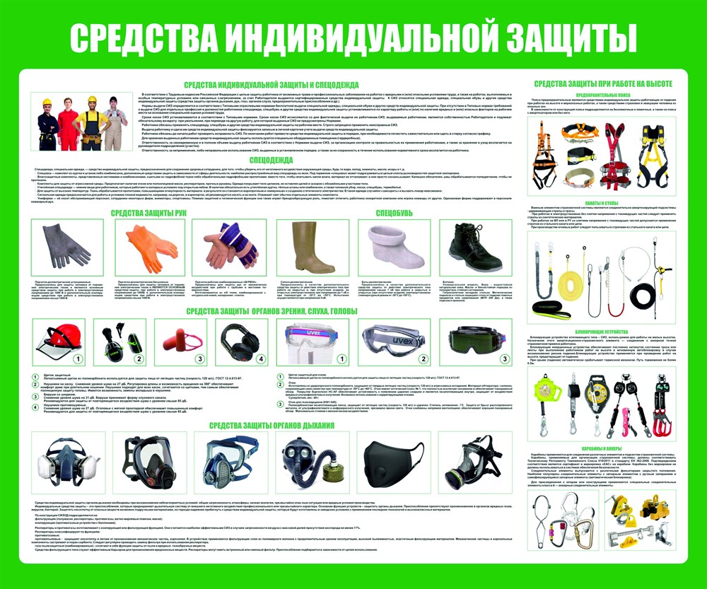 Стенд Средства Индивидуальной Защиты размер 1200 х 1000 пластик 3 мм