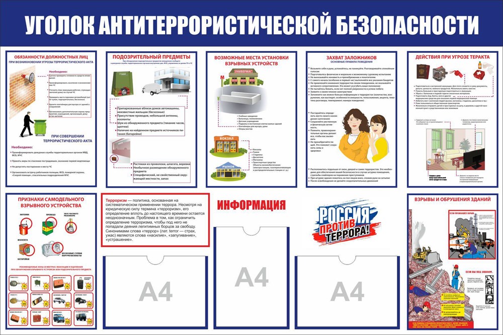 Выбирая стенд "Уголок антитеррористической безопасности", вы получаете надежный и функциональный инструмент для информирования и обеспечения безопасности ваших сотрудников и посетителей.