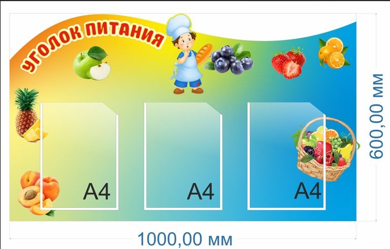 Стенд Уголок питания 1000 х 600, ПВХ-3мм, карманы А4 -3шт. (вертикальные)