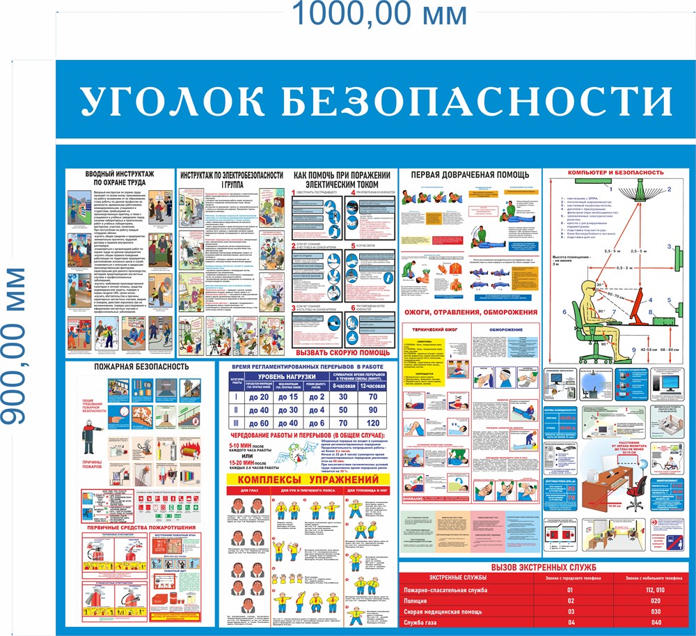 Стенд Уголок безопасности 1000 х 900, ПВХ-3мм