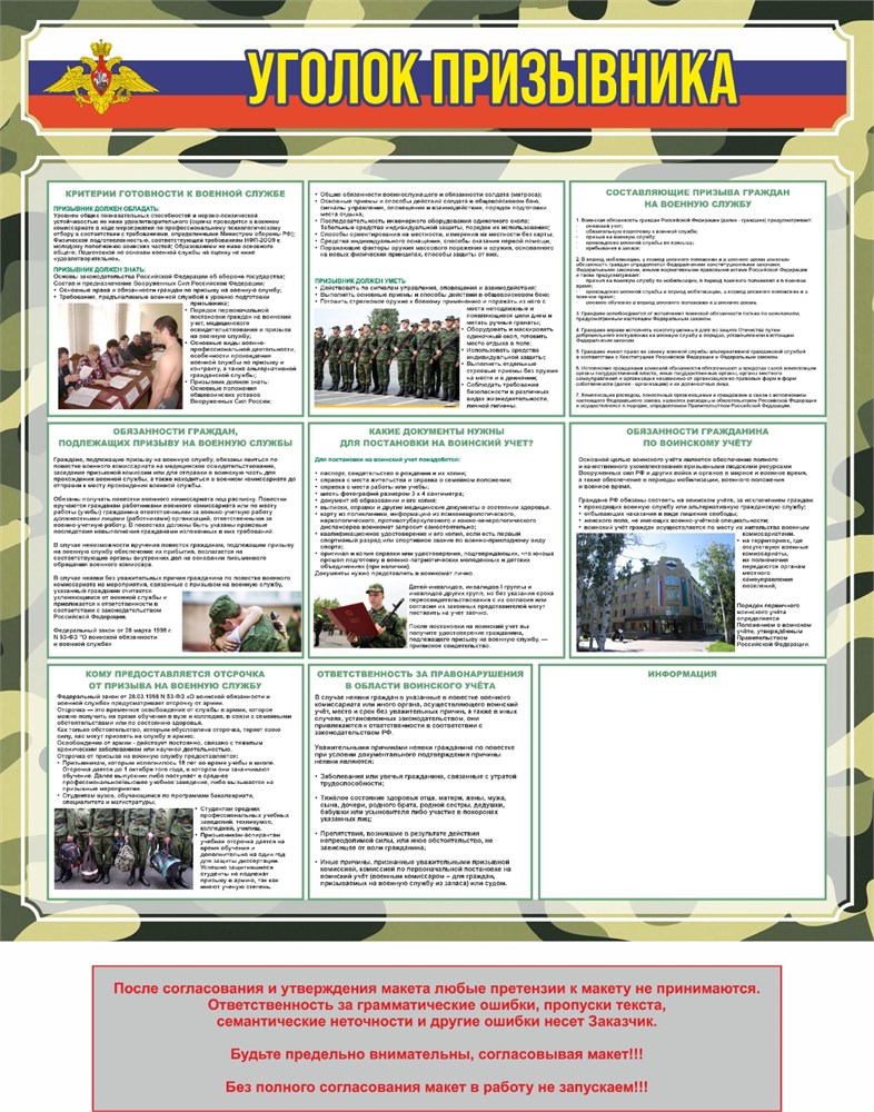 Стенд "Уголок призывника" 1200 х 1200 пластик 3мм