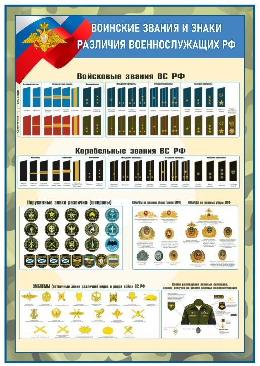 Стенд "Воинские звания и знаки различия военнослужащих РФ" 700 х 1000 - ПВХ-3мм