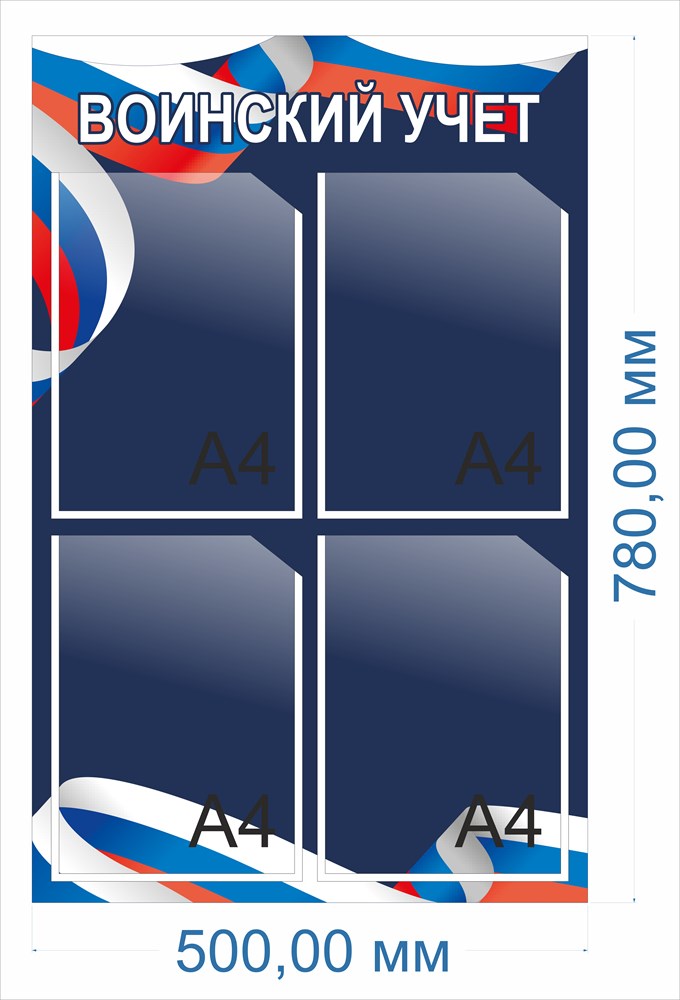 Стенд воинский учет 500 х 780, ПВХ-3мм, карман А4-4шт.