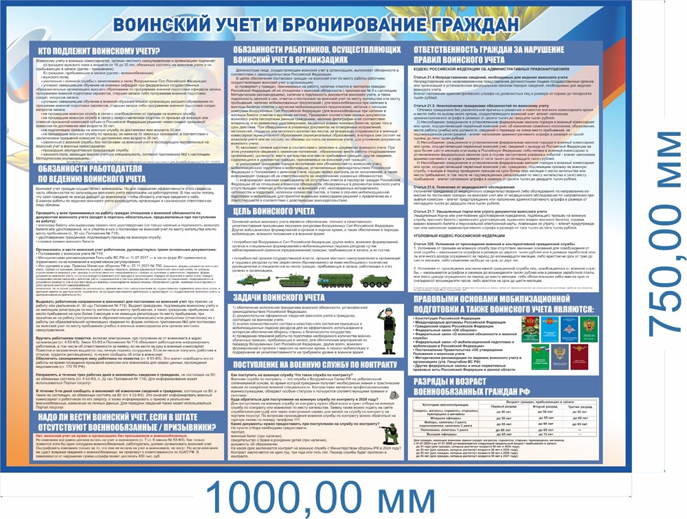 Стенд Воинский учёт и бронирование граждан 1000 х 750 мм. ПВХ-3мм